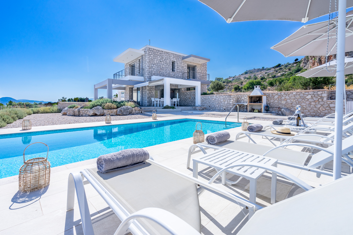 Welcome to The Red Rock Villa – a luxurious 180 m² retreat nestled on the stunning island of Rhodes. This contemporary villa offers the perfect holiday escape for families or groups of friends, featuring four spacious bedrooms, a private infinity pool, and an outdoor grill for al fresco dining.