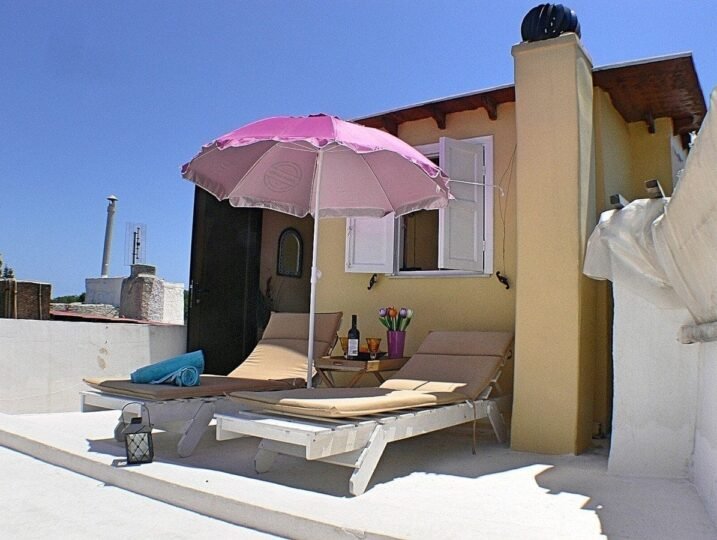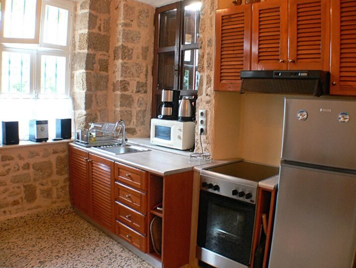 The house, originally built in 1300, has been carefully restored to preserve its historical charm while also offering modern amenities. It is situated in the ‘Jewish Quarter,’ a neighborhood known for its rich history and vibrant atmosphere. Just 50 meters from the Synagogue and 100 meters from Evreon Martion Square, this location is perfect for immersing yourself in the local culture.Spread over two floors, the maisonette offers a total of 65 square meters of living space. On the ground floor, you will find a fully equipped kitchen with all the necessary kitchenware, including a washing machine, microwave, coffee machine, and fridge with an icebox. The kitchen also has a cozy sitting area around an open fireplace, perfect for enjoying a cup of coffee or a glass of wine on a chilly evening. Free Wi-Fi is also available throughout the house.The ground floor also includes a bathroom with a shower, toilet, and a window that provides plenty of natural light. The house has both solar and electric water heating, ensuring warm water even during the winter months.Moving up to the first floor, you will find the bedroom, complete with an in-built antique wardrobe and a comfortable 1.60 x 2.00 bed. The bedroom also has a balcony, perfect for enjoying your morning coffee or admiring the neighborhood’s bustling streets. You can also relax and watch TV on the satellite channels or enjoy the wooden floors and abundant natural light from the several windows. The bedroom is also air-conditioned, providing a comfortable temperature during the hot summer months.The second floor is accessible via a deep and narrow staircase, reminiscent of a boat’s stairs. Here, you will find a small storage room and the highlight of the house – the roof terrace. The terrace is equipped with two sun loungers, a water tap, and offers a breathtaking view of the rooftops and the harbor. It is the perfect place to soak up the sun, enjoy a meal, or simply relax and take in the stunning surroundings.This maisonette is also available for long-term rent, making it an ideal option for those looking to fully immerse themselves in the Greek way of life. The property is nestled in a Greek neighborhood, surrounded by friendly locals, and within walking distance of all the major sightseeing spots, restaurants, bars, museums, and the beach.Please note that the house is not suitable for small children due to the steep staircase leading to the roof terrace. However, it is the perfect romantic getaway for couples or a peaceful retreat for solo travelers.In conclusion, this maisonette in the medieval city with a roof terrace offers a unique and authentic experience for those seeking to explore the historic Old Town. With its perfect location, charming interior, and stunning rooftop views, it is sure to make your stay in this beautiful city an unforgettable one.