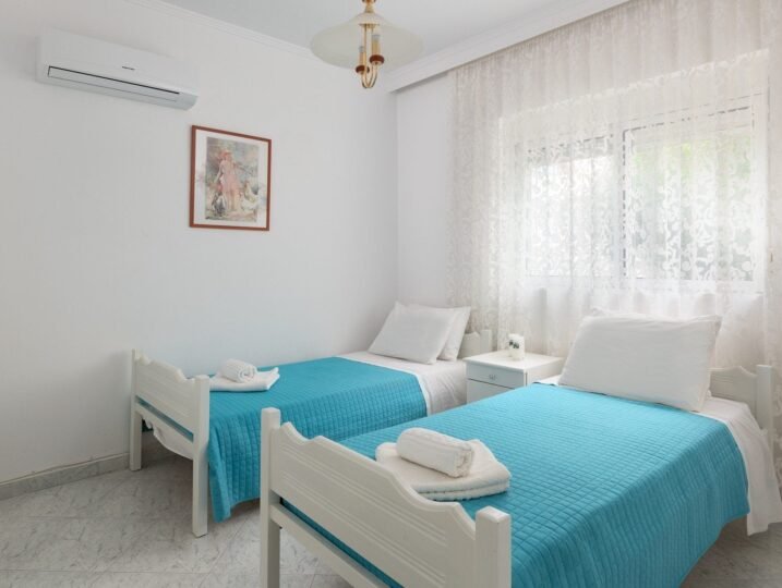 The Rhodes South Escape Cottage is the perfect destination for those looking for a luxurious and relaxing vacation on the beautiful island of Rhodes, Greece. Located right on the sandy beach second row in Plimmiri, this 4 bedroom house offers stunning views of the sparkling Mediterran Sea and is close to the Surfer Paradise, making it an ideal location for water sports enthusiasts.