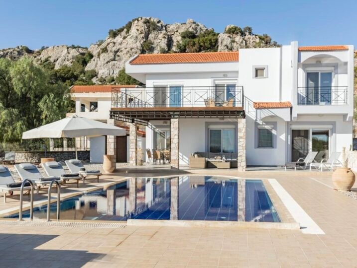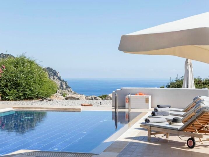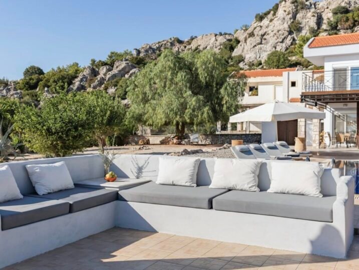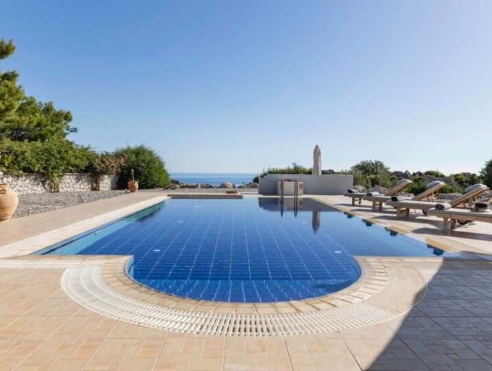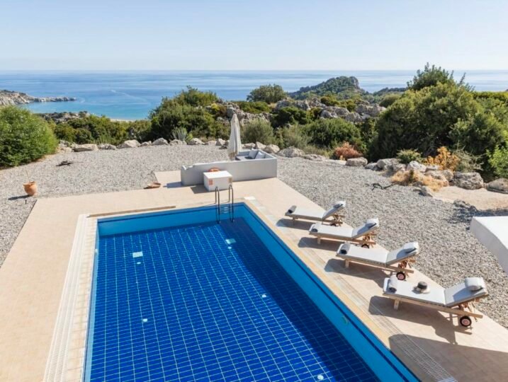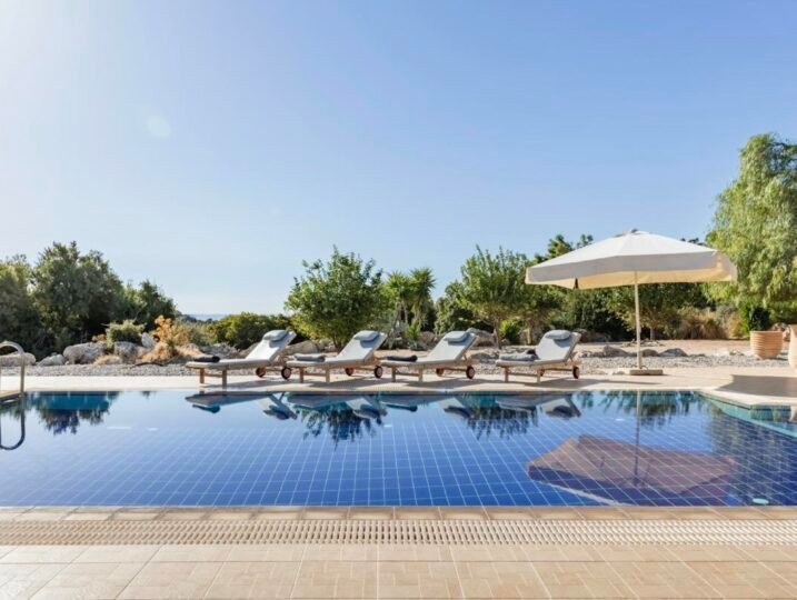 One of the villa’s standout features is the morning yoga session overlooking the stunning Tsambika Bay. Start your day with a rejuvenating yoga practice as the sun rises over the sea, or take a refreshing swim in the expansive 7×9 meter pool to energize yourself for the day ahead.