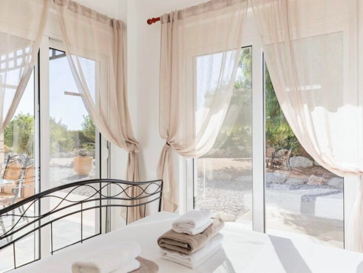In the evenings, the villa transforms into the perfect setting for intimate BBQs. With uninterrupted views of Tsambika Bay and the nearby monastery, you can savor a delightful meal while surrounded by the peaceful sounds of nature—the only interruptions being the distant call of crickets or the gentle bleating of goats.