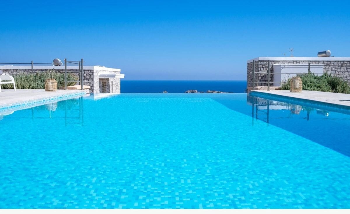 Perched to capture the essence of its name, the villa is perpetually caressed by the gentle, cooling meltemi winds, offering a refreshing respite from the Aegean sun. Its architecture is a masterclass in harmonious contrast: clean, minimalist lines and expansive glass façades frame the dramatic, ever-changing canvas of the Ixian coastline, while traditional white-washed elements pay homage to the island’s vernacular.