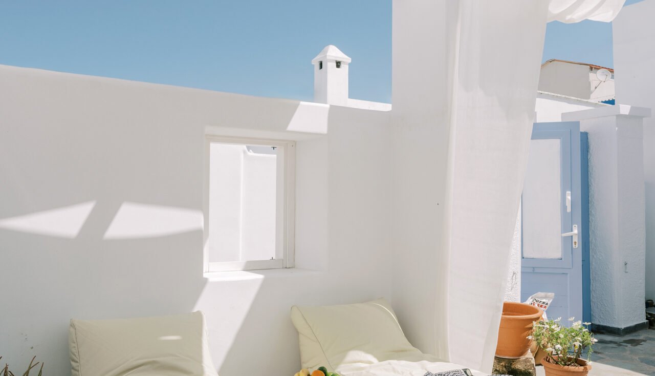 The villa’s interior is elegantly designed with a charming simplicity, featuring soothing blue and white tones that mirror the colors of the sea. Four of the six bedrooms include en-suite bathrooms with showers, while the other two share a bathroom. Each bedroom also opens to a private outdoor terrace, perfect for enjoying morning coffee or an evening glass of wine in complete serenity.