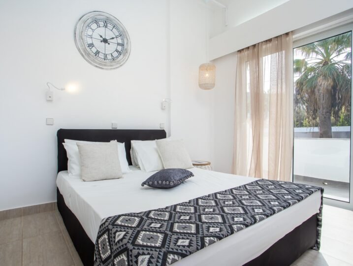 Each of our 11 studios is designed to offer the perfect blend of style and functionality, ensuring a comfortable and memorable stay. With modern amenities such as en-suite bathrooms, private balconies to soak up the Greek sunshine, and fully equipped kitchenettes, every detail is tailored to ensure your stay is as comfortable as it is memorable.