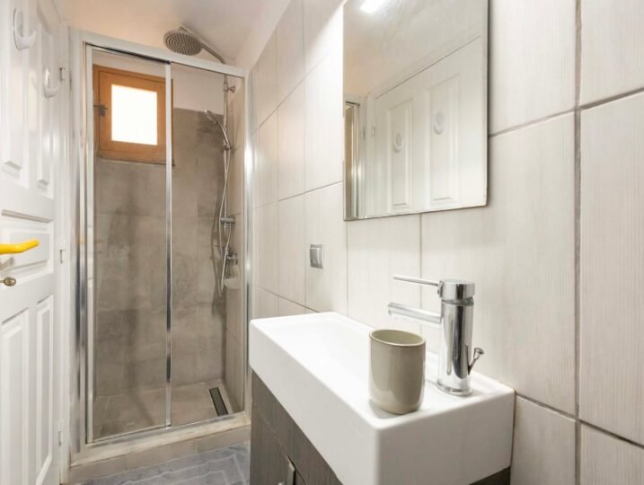 The crown jewel of the house awaits on the second floor, accessible via a charming narrow staircase reminiscent of a ship’s ladder. Here, the roof terrace offers a private escape with two sun loungers and breathtaking views of the rooftops and the harbor. Whether you’re basking in the sun, enjoying an alfresco meal, or simply soaking in the historic surroundings, the terrace is a highlight of the property.