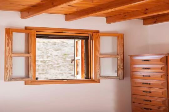 Maison Roxanne is an enchanting retreat offering 85 square meters of thoughtfully designed living space, perfect for accommodating up to three adults. The open-plan ground floor features a cozy fireplace, a well-equipped kitchen, and a living area divided by a charming arch. A comfortable sofa bed provides additional sleeping space, making this home ideal for families or small groups.