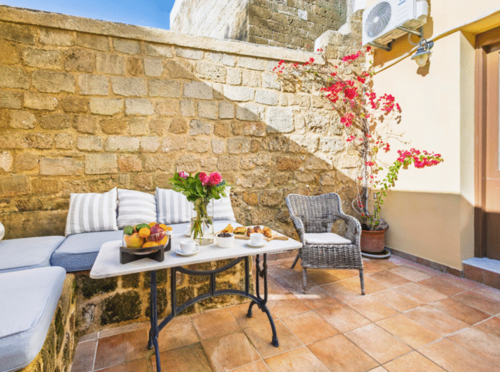 Nestled in a vibrant Greek neighborhood, the maison is just steps from restaurants, shopping, and museums, placing you at the heart of the medieval city’s charm. Rhodes, the principal city of the island, boasts a rich history and is a UNESCO World Heritage Site. It’s medieval citadel, constructed by the Knights of St. John, is one of Europe’s best-preserved historical landmarks. Beyond the city walls, the lush and fertile island offers stunning beaches and scenic landscapes, making Rhodes a premier Mediterranean destination.