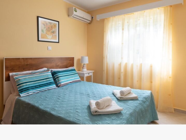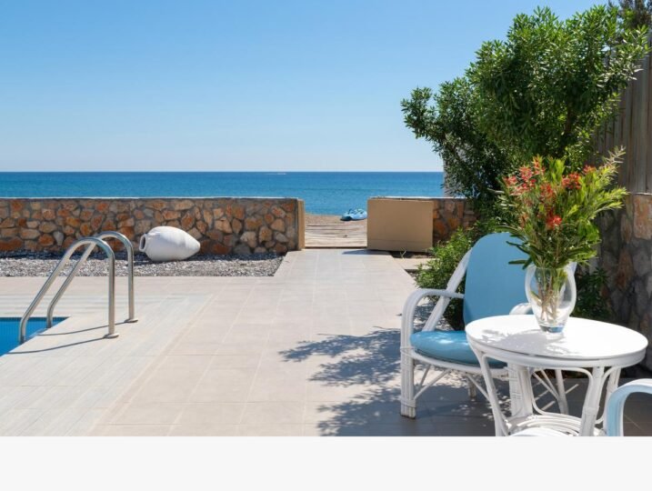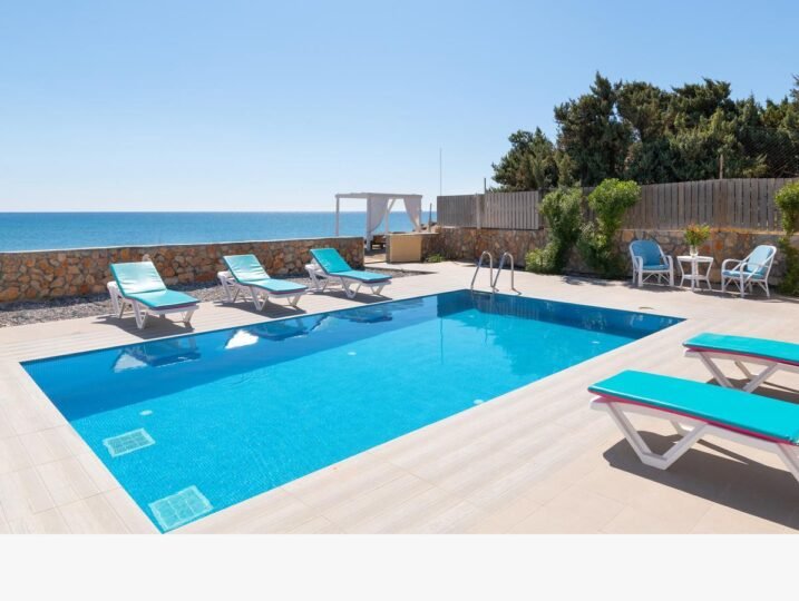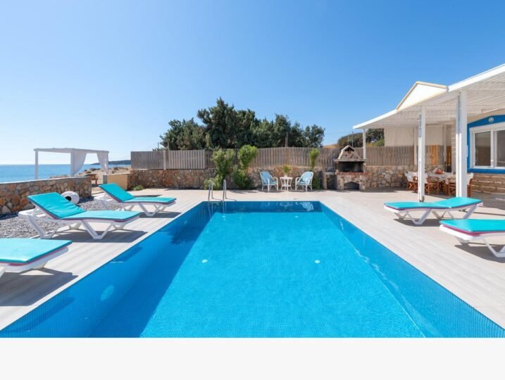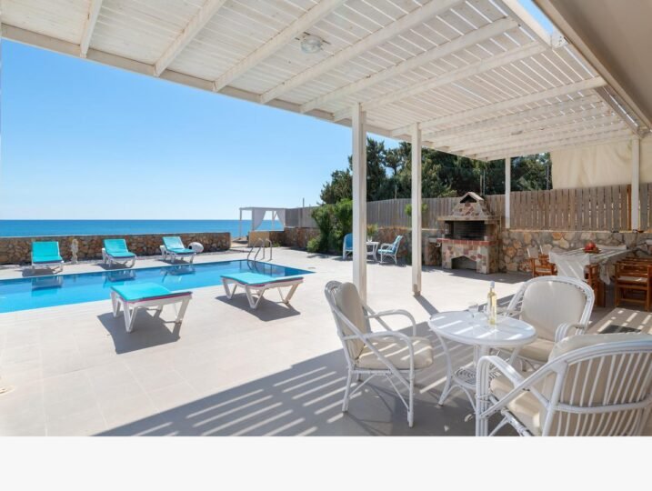 Located in front of the sparkling Mediterranean Sea, with a beach hat and sun beds waiting for you, this villa offers everything you need to enjoy the most valuable time at your holiday’s. The villa boasts a private infinity pool, measuring 3.5 x 7 meters, where you can cool off and relax while taking in the breathtaking views of the sea. An outdoor shower with warm water is also available, providing you with the perfect refreshment after a dip in the pool. The property is situated on enclosed grounds, surrounded by a wall and with a private entrance, ensuring your privacy and security. The owner of the villa lives on the premise, adding a personal touch to your stay. There is also a second private fenced pool villa on the premise, allowing for a total accommodation of up to 16 people. Each villa has its own pool, making it ideal for large families or groups of friends who want to spend their holiday together but still have their own private space. Located in the scenic south of the island, this newly built, self-catering, three-bedroom holiday beach house offers all the modern amenities you could possibly need. The spacious bedrooms are beautifully decorated and equipped with comfortable beds to ensure a good night’s sleep. The two bathrooms are modern and stylish, with one featuring a bathtub for a relaxing soak after a day at the beach. As this villa is located in a remote area, a car rental is mandatory. However, this is the perfect opportunity to explore the stunning surroundings and discover hidden gems of the island. The villa can assist you in arranging a local car rental, so you can easily explore the area at your own pace. Imagine waking up to the sound of waves crashing on the shore, enjoying a cup of coffee on your private terrace, and then taking a refreshing swim in your own pool before heading out to explore the island. And when the day is over, you can come back to your private oasis, where you can enjoy a delicious barbecue dinner under the stars. Don’t miss out on the opportunity to experience a luxurious beachfront holiday at this stunning 4 bedroom villa. Book now and start counting down the days until you can relax in front of the sparkling Mediterranean Sea, with a beach hat and sun beds waiting for you. Your dream holiday awaits at this private paradise.